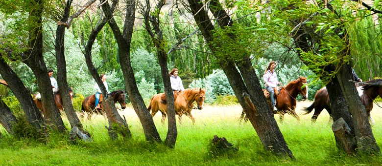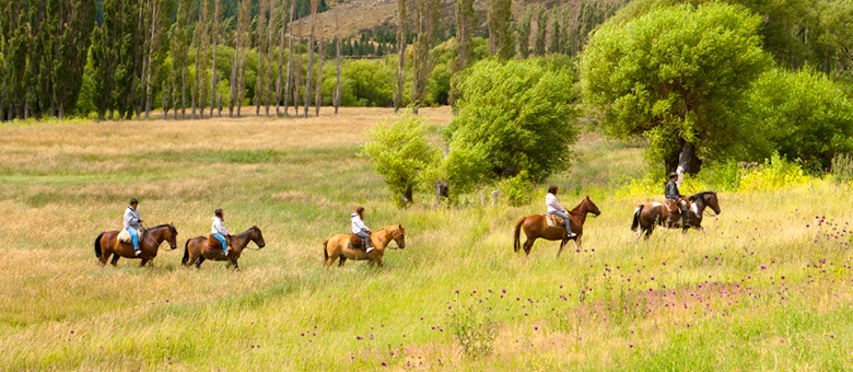 En la entrada de Esquel, en un ambiente predominantemente rural, se ubica la chacra Los Álamos, tradicional organizador de las excursiones a caballo que recorren la zona del Valle Chico y las estribaciones del cerro Nahuel Pan. Pensadas para toda la familia, las cabalgatas varían en su duración desde paseos sencillos y de baja exigencia de alrededor de una hora hasta jornadas completas que exigen a los jinetes mayor tiempo y disposición. En ocasiones especiales se realizan también excursiones nocturnas bajo la luz de la luna llena. La tropilla está conformada por caballos que se caracterizan por su docilidad y que están habituados a recorrer este tipo de geografía, así que no es necesario tener experiencia, solo hace falta llevar calzado cómodo y buen abrigo.